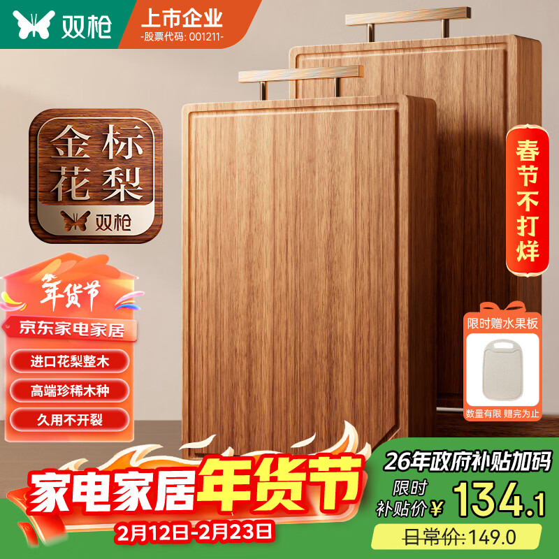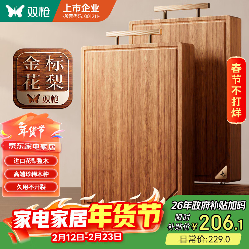 双枪(Suncha)金花梨木菜板整木砧板抗菌家用食品级切菜实木案板45*30*3cm