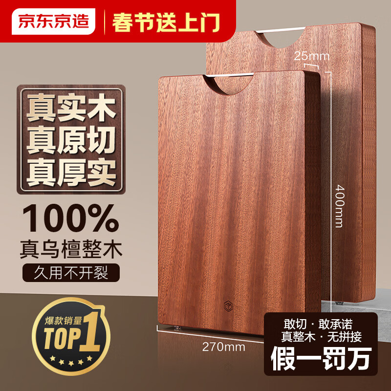 京东京造 菜板 砧案板切菜家用双面实木抗菌 【乌檀整木】40*27*2.5cm