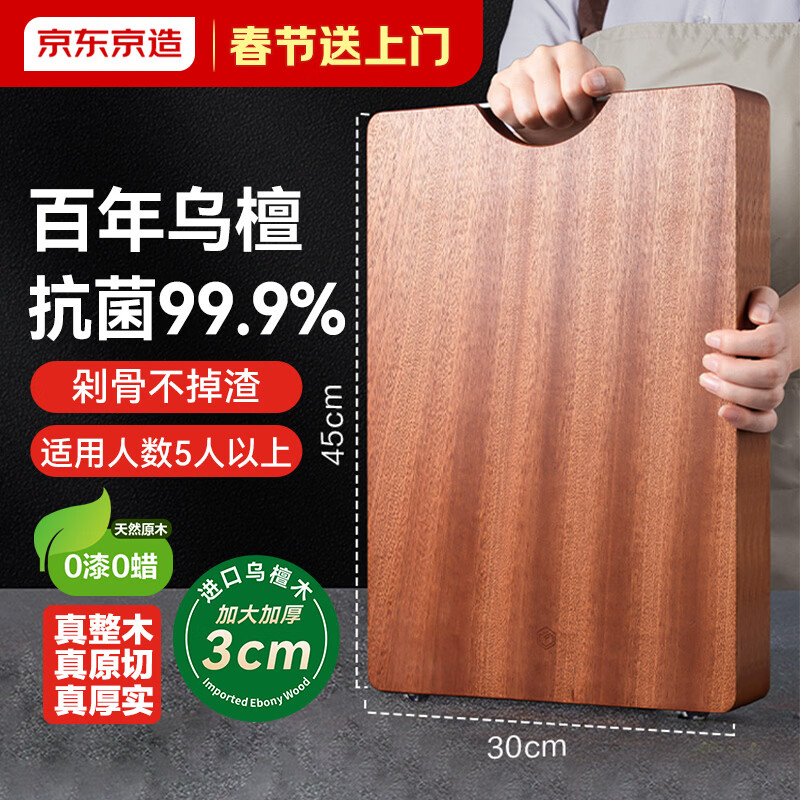 京东京造 菜板 砧案板切菜实木家用食品接触级抗菌【乌檀整木】 45*30*3CM