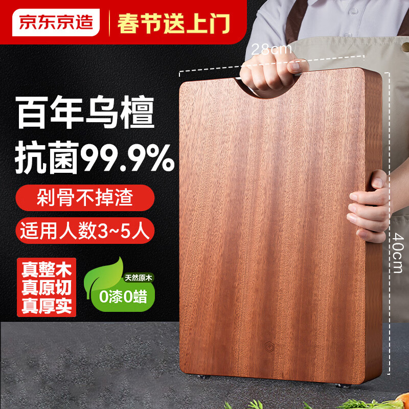京东京造 菜板 砧案板切菜实木双面分切抗菌【乌檀整木】加厚40*28*3cm