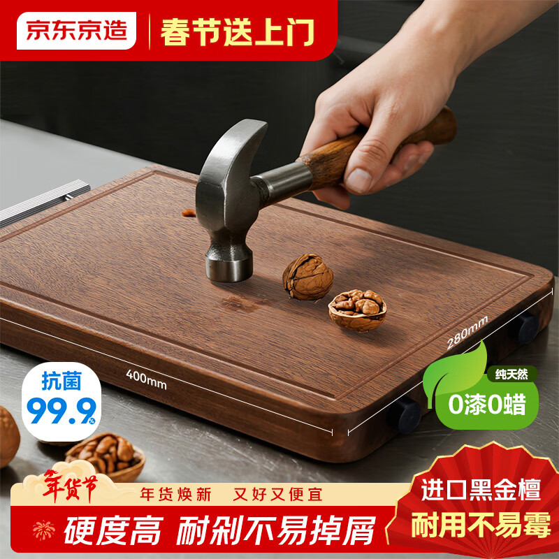 京东京造 菜板 砧案板切菜实木家用食品接触级【整木黑金檀】 40*28*2.5cm