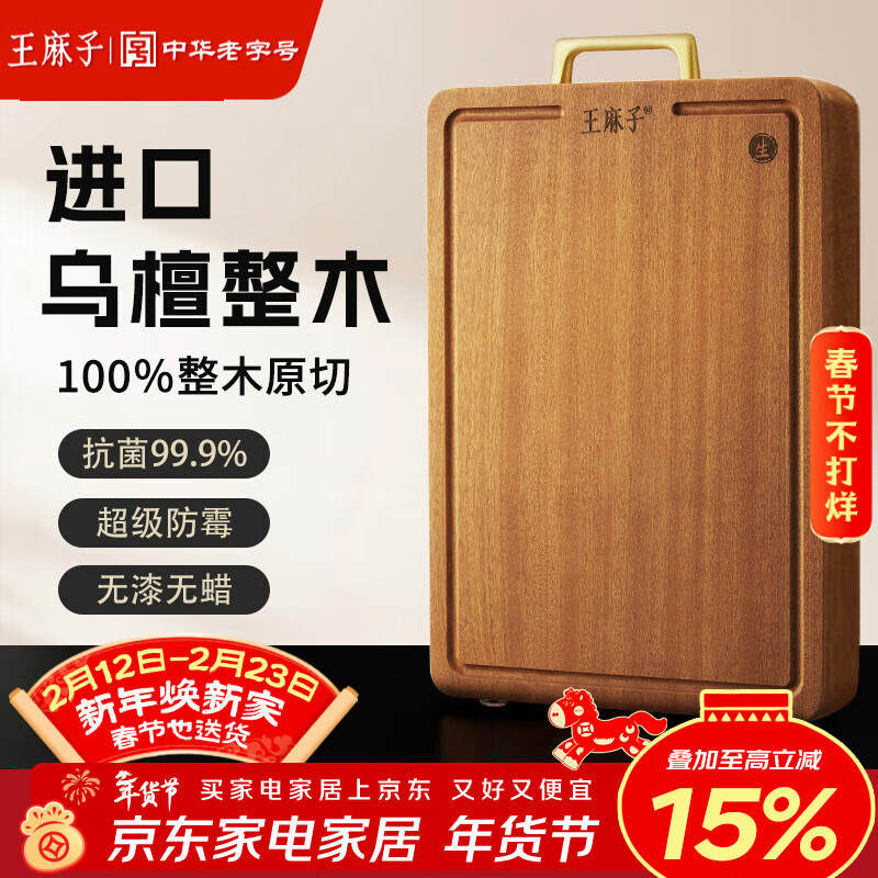 王麻子乌檀木菜板 实木砧板防霉抗菌家用食品级整木粘板案板40*28*2.5cm