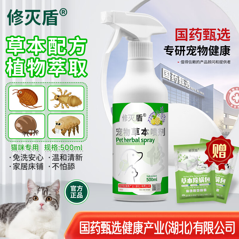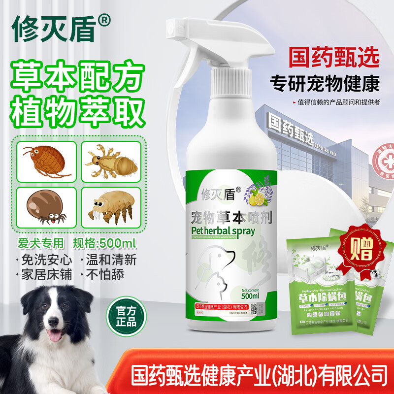 修灭盾跳蚤杀虫剂驱虫除虫药喷雾猫狗体外虱子蜱虫宠物草本喷剂500ml