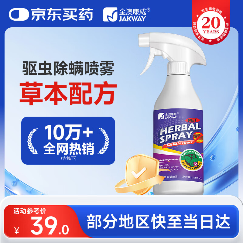 金澳康威草本驱虫除螨喷雾500ml 跳蚤杀虫剂驱虫除虫药猫狗体外虱蜱虫宠物