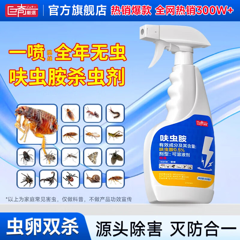 巨奇呋虫胺跳蚤专用杀虫剂床上可用宠物驱虫无害灭臭虫床虱喷雾500ml