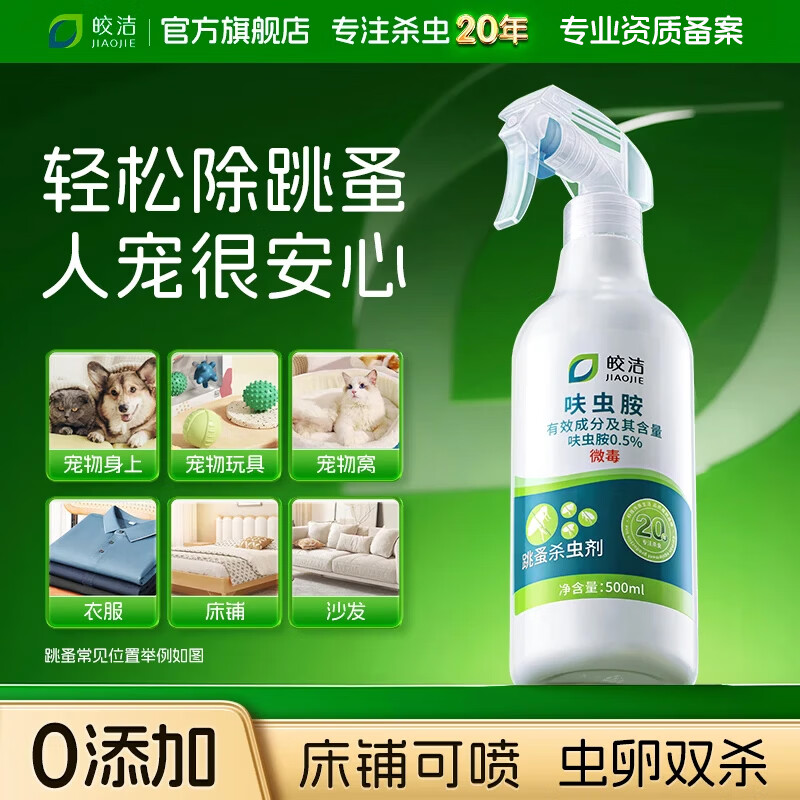 皎洁跳蚤专用杀虫剂床上家用室内去除灭杀喷雾猫狗宠物驱虫药500ml