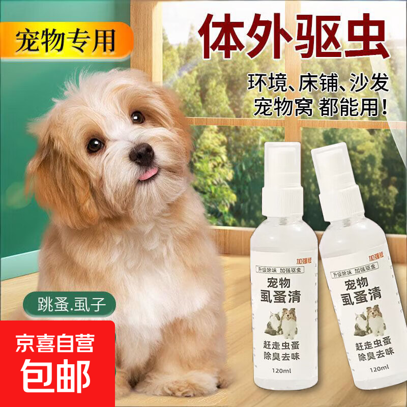 虱蚤清宠物猫狗体外驱虫蜱虫跳蚤虱子强效驱虫喷剂除臭剂非杀虫剂 户外便携120ml 【单瓶】试用