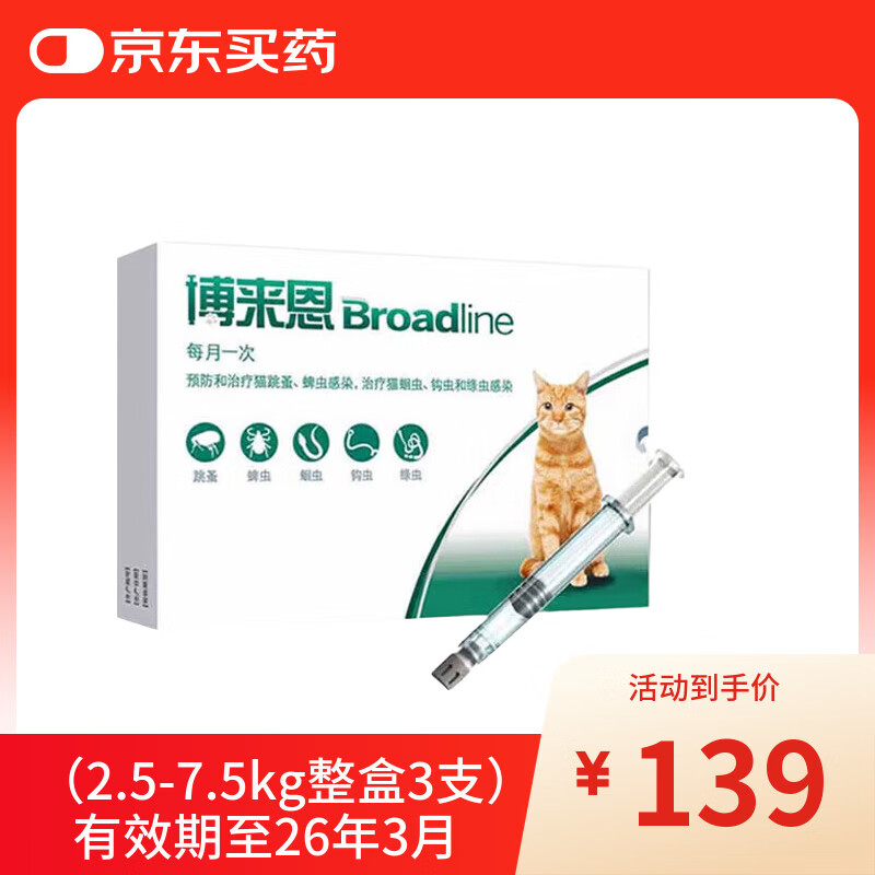 博来恩体内外同驱驱虫药猫咪体内体外一体打虫药宠物除跳蚤蜱虫杀虫剂 2.5-7.5kg猫用(整盒3支)