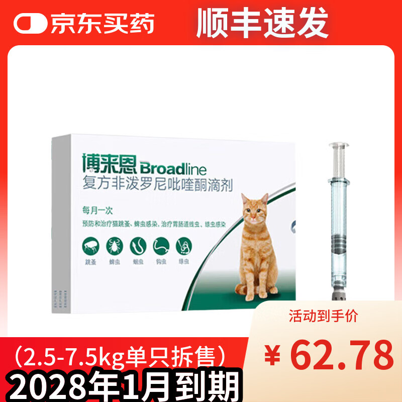 博来恩体内外同驱驱虫药猫咪体内体外一体打虫药宠物除跳蚤蜱虫杀虫剂 2.5-7.5kg猫用(26年8月到期) 1支*1支