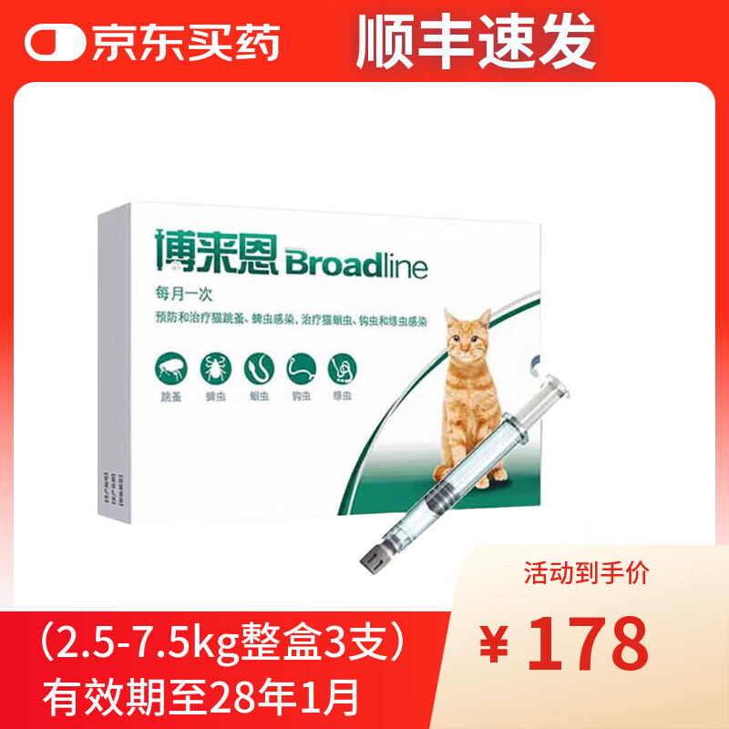 博来恩体内外同驱驱虫药猫咪体内体外一体打虫药宠物除跳蚤蜱虫杀虫剂 2.5-7.5kg猫用 3支*1盒