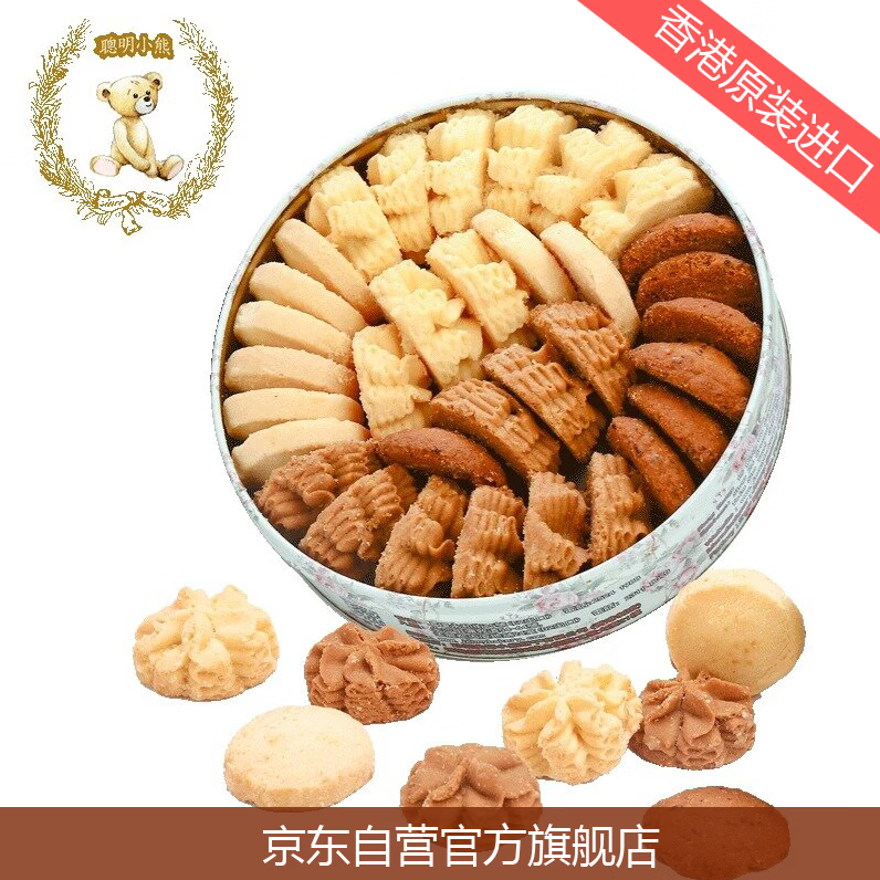聪明小熊香港珍妮曲奇聪明小熊饼干二味曲奇640g双层进口休闲食品源头直发