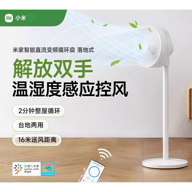 米家 小米电风扇空气循环落地扇家用直流变频大广角轻音节能台地两用温湿智能感应APP100档调节 米家智能直流变频循环扇 落地式
