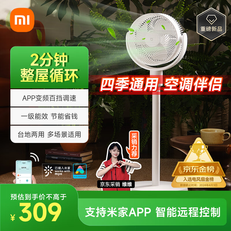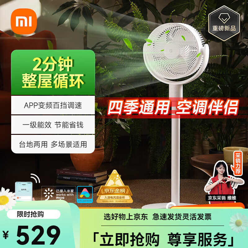 小米米家空气循环扇电风扇 小米台式电风扇 家用智能直流变频落地扇立式摇头节能电风扇大风力轻音低噪 米家循环扇