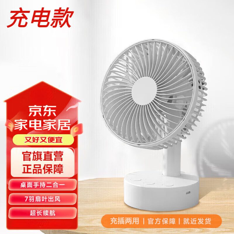 小米白桌面小风扇静音空气循环USB可充电台式家用办公室学生宿舍床头大风力便携制冷电风扇大扇面 白色-四档风力调节+插电款