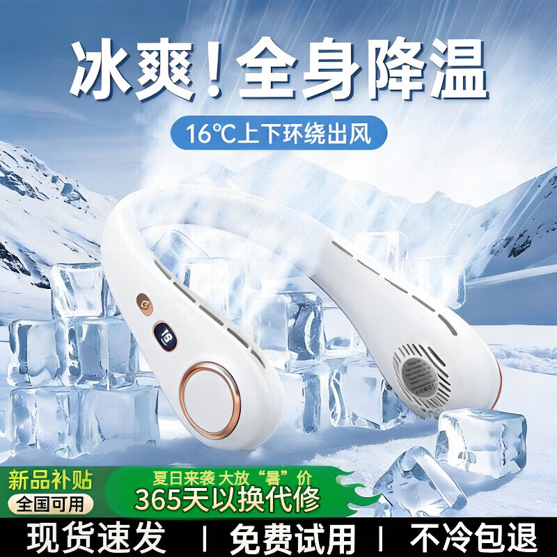 小米宝宝挂脖风扇2026新款超长续航随身携带充电风扇宿舍静音小电风扇制冷宿舍风扇床上用超静音空气循环扇 小米白-智能数显-五档调节-无叶多风孔