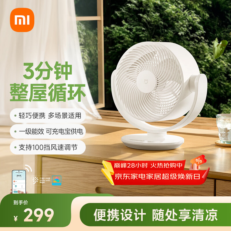 米家小米直流变频台式循环扇 家用电风扇空气循环扇一级能效静音小风扇 米家直流变频台式循环扇
