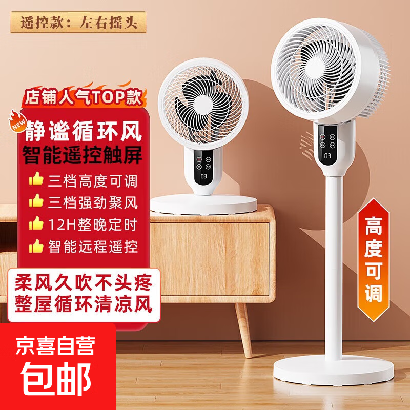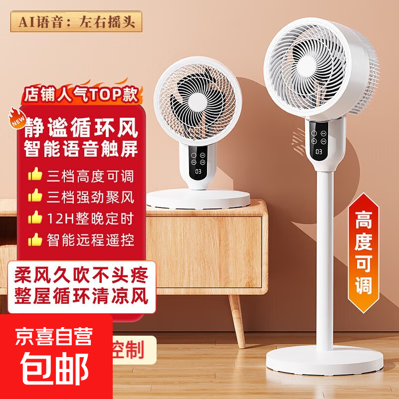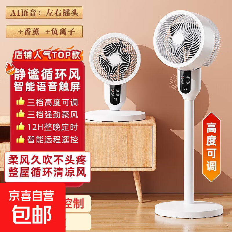 小米白【2025新款】空气循环扇家用电风扇静音立式落地风扇制冷空调卧室桌面台扇轻音宿舍床头智能遥控 豪华旗舰款-净化负离子+超大风力