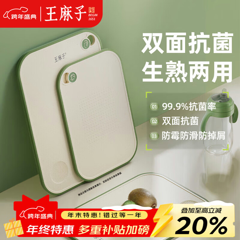 王麻子抗菌切菜板 小麦秸秆食品级砧板防霉抗菌案板切肉切水果砧板
