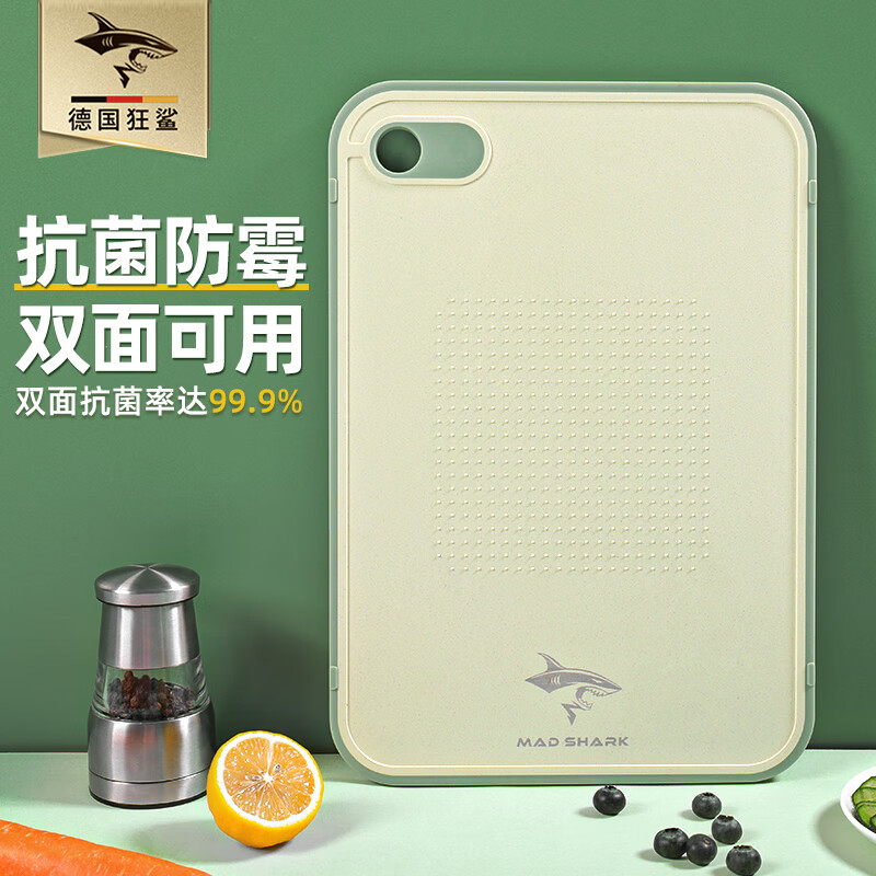MAD SHARK德国进口切菜板小麦秸秆双面抗菌防霉砧板家用食品级水果熟食案板 抗菌绿色-特大号45*30*1.0CM