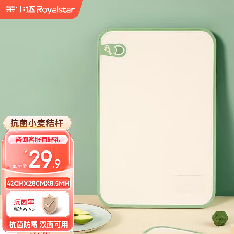 荣事达(Royalstar)小麦秸秆菜板砧板水果案板切菜板食品级家用环保可降解42*28