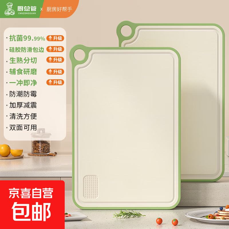 王麻子抗菌切菜板 小麦秸秆食品级砧板防霉抗菌案板切肉切水果砧板