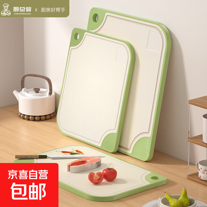 厨总管小麦秸秆菜板抗菌防霉家用辅食切菜板水果案板粘板厨房砧板 浅绿色 长方形 33*23* 0.5cm