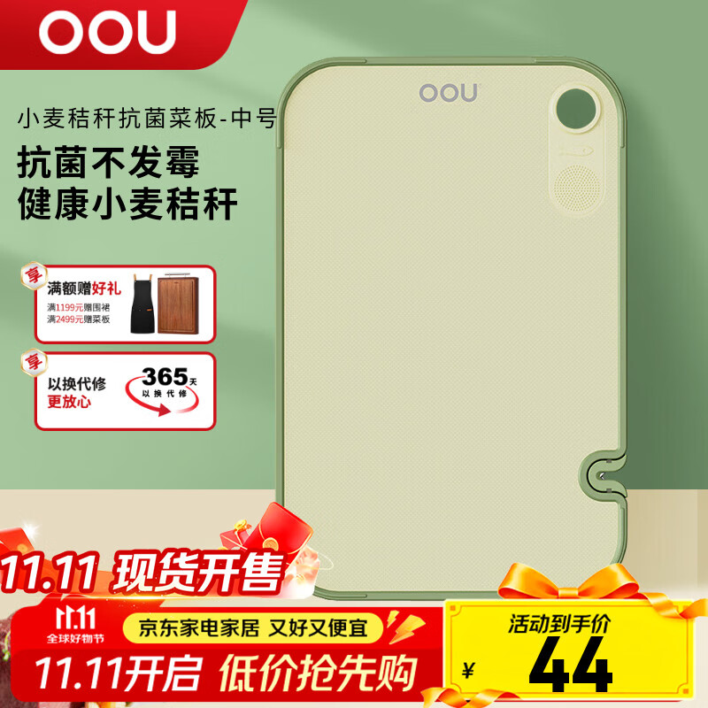OOU小麦秸秆菜板抗菌防霉砧板切菜板厨房家用案板宝宝辅食切菜板 抗菌麦秸菜板【中号】