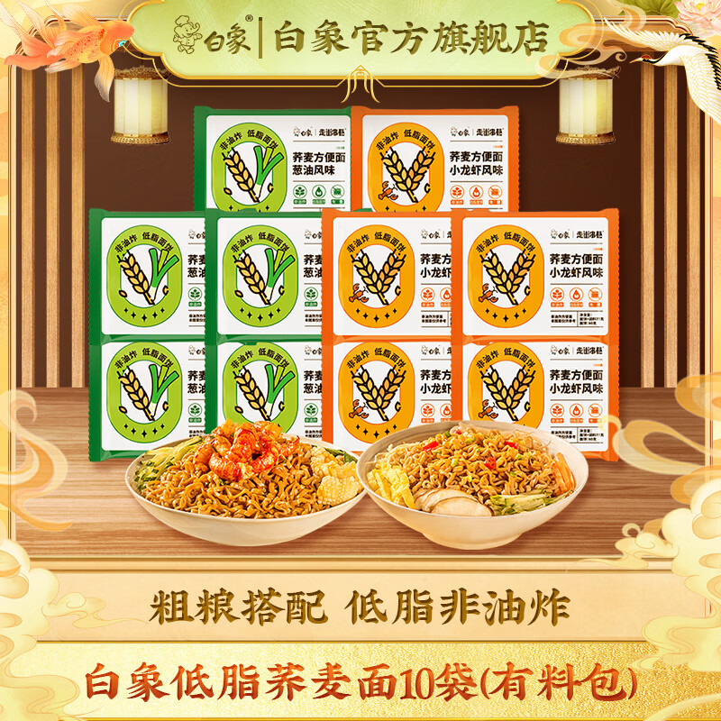 白象 非油炸荞麦面 方便面 葱油小龙虾粗粮全主食即食泡面整箱 葱油+小龙虾(共10袋)
