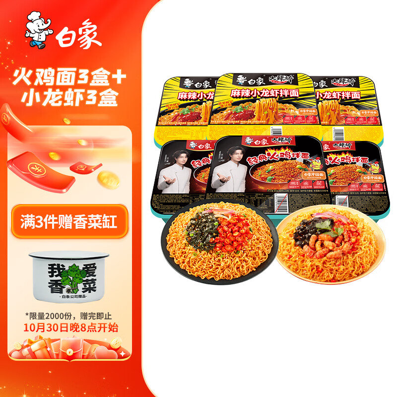 白象 方便面 火鸡面119g*3盒+小龙虾拌面115g*3盒组合拌面泡面整箱6盒