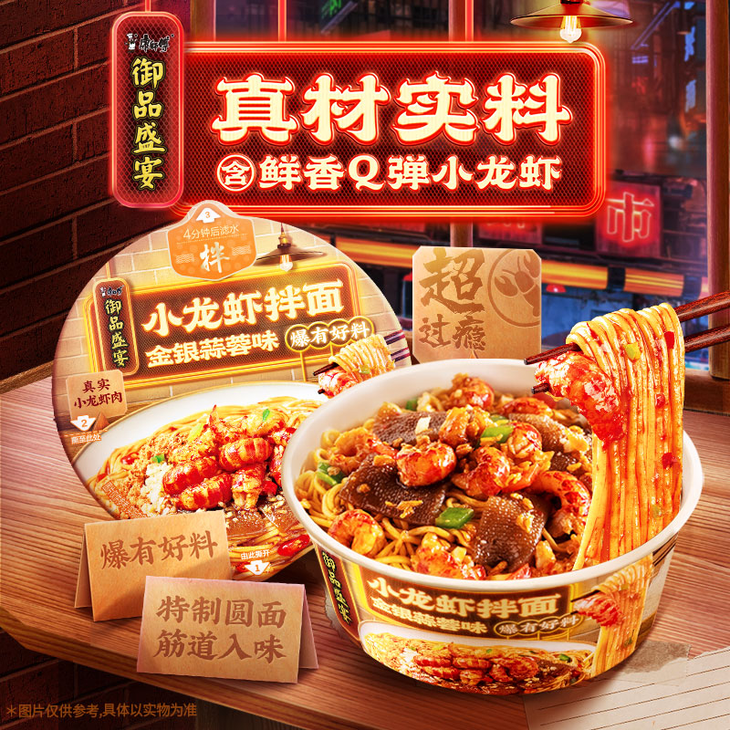 康师傅方便面御品盛宴金银蒜蓉味小龙虾拌面170g单盒夜宵速食