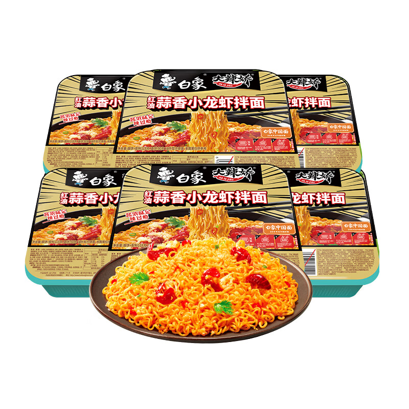 白象方便面拌面红油蒜香小龙虾拌面118g*6盒拌乐多泡面整箱
