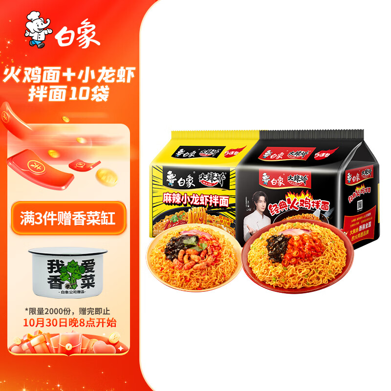 白象 方便面 火鸡面 麻辣小龙虾拌面组合装10包装泡面