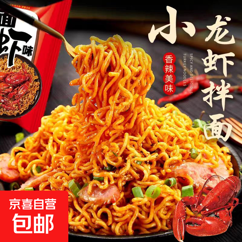 香辣小龙虾风味拌面超辣速食干拌面泡面方便面拉面整箱零食夜宵 小龙虾风味拌面3袋