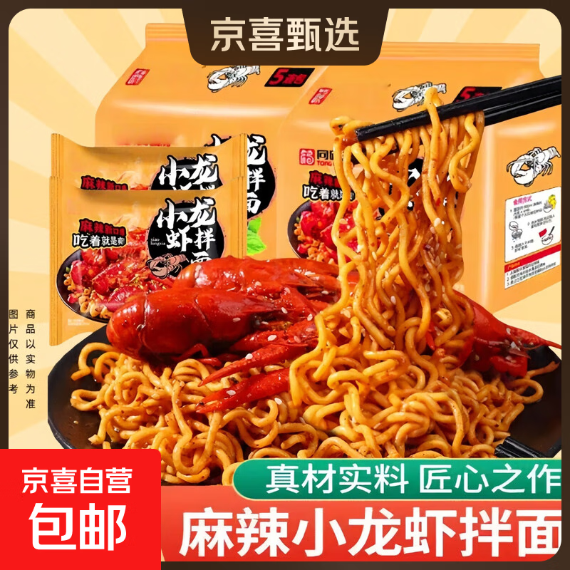 【京东快递】同百福 小龙虾拌面 香辣面劲道泡面方便面夜宵97g 5袋