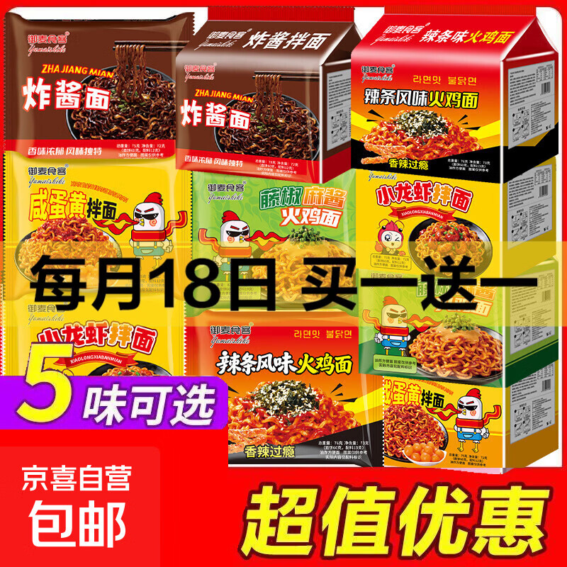 多种口味火鸡面超辣泡面咸蛋黄拌面麻酱速食76g袋装方便面整箱宵 5混【炸酱+藤椒麻酱火鸡+小龙虾+辣条火鸡+咸蛋黄】 特价【整箱5包】