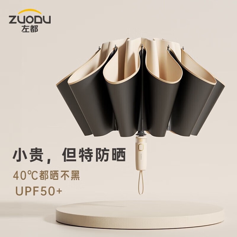 左都(ZUODU)全自动晴雨伞三折伞晴雨两用折叠伞女黑胶防晒防紫外线便携遮阳伞