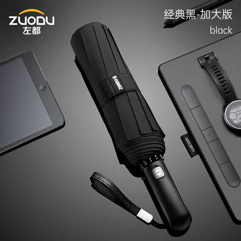 左都(ZUODU)全自动三折雨伞男士便携折叠伞晴雨两用伞女高端超大号抗风暴伞