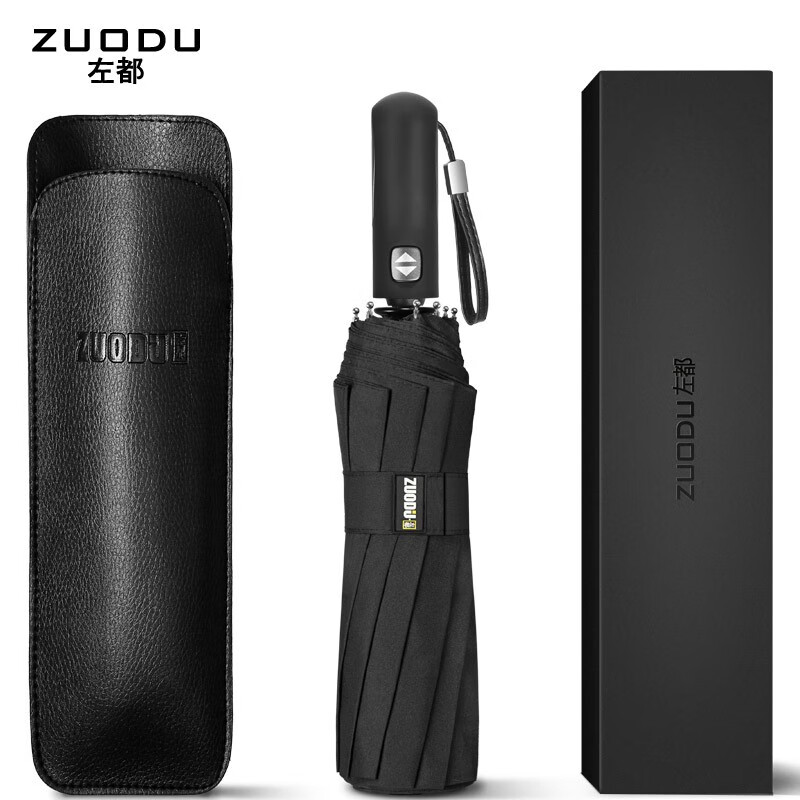 左都(ZUODU)双骨全自动雨伞暴雨专用男士大号加固加厚反向折叠车载抗风暴