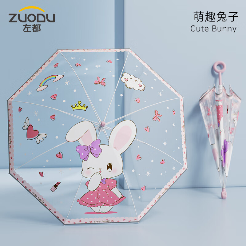 左都(ZUODU)儿童雨伞直柄透明男童女童7-12岁小孩儿小学生宝宝长把卡通直柄伞
