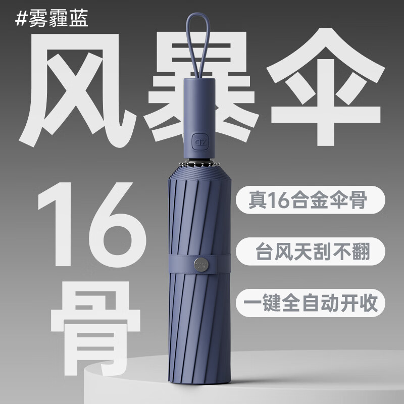 左都(ZUODU)16骨全自动雨伞男士大号加固加厚结实抗风女晴雨两用折叠暴雨伞