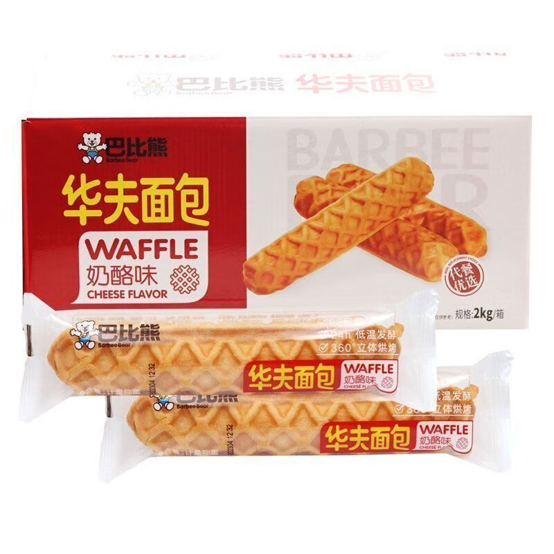 巴比熊面包整箱混合口味红豆夹心吐司奶酪早餐代餐零食 原味华夫饼 500g (1斤)