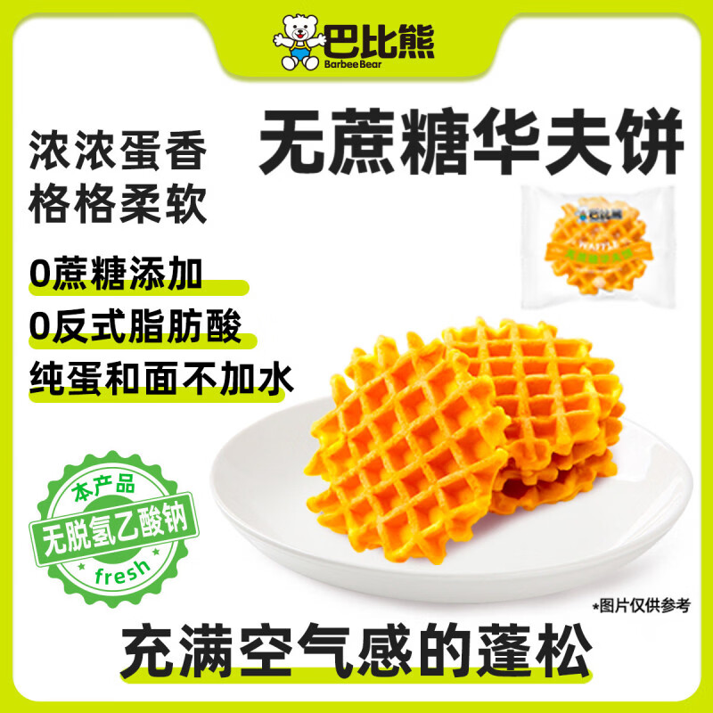 巴比熊无蔗糖华夫饼蛋糕原味儿童早餐华夫蛋糕代餐手撕面包休闲零食小吃 巴比熊【无蔗糖】华夫饼 250g