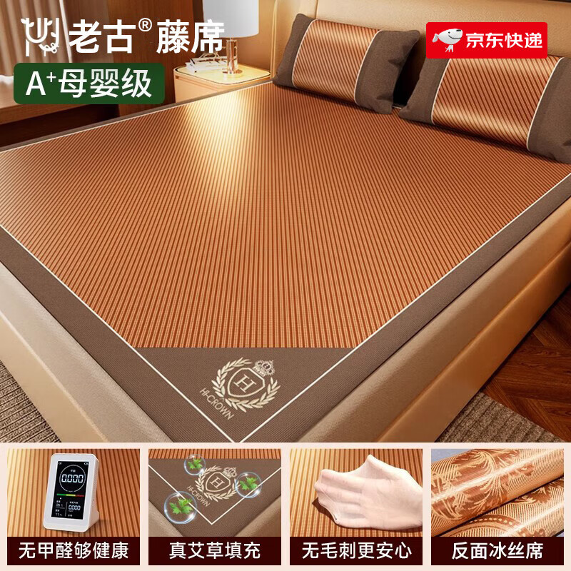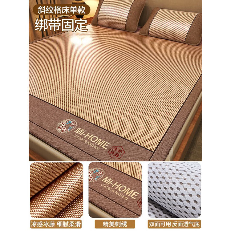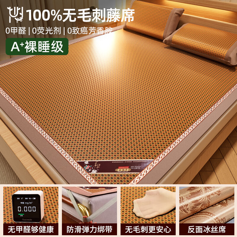 席饰多冰丝凉席夏天2025新款藤席a类母婴级空调席加厚夏季草席子可折叠 [款]经典冰藤席-鎏光金-床单款[ 120cm*195cm