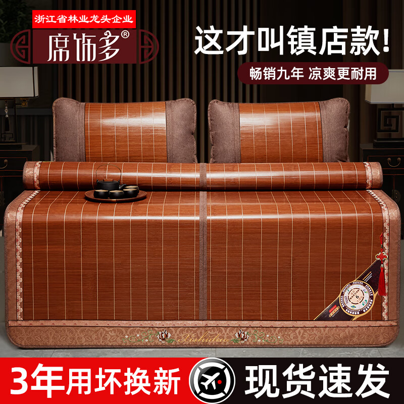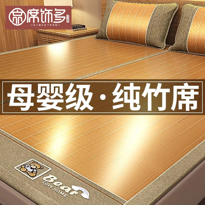 席饰多 凉席竹席夏天双人席子双面高端竹凉席单人可折叠两用家用凉席子 生态水磨席(含枕套) 1.8m床 180*200cm