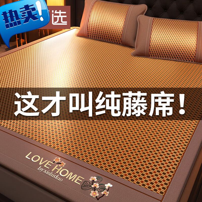 席饰多严选 夏季天然纯藤席新款冰丝凉席床垫学生宿舍单人竹席夏天家用 肤原藤席带枕套 120cm*195cm
