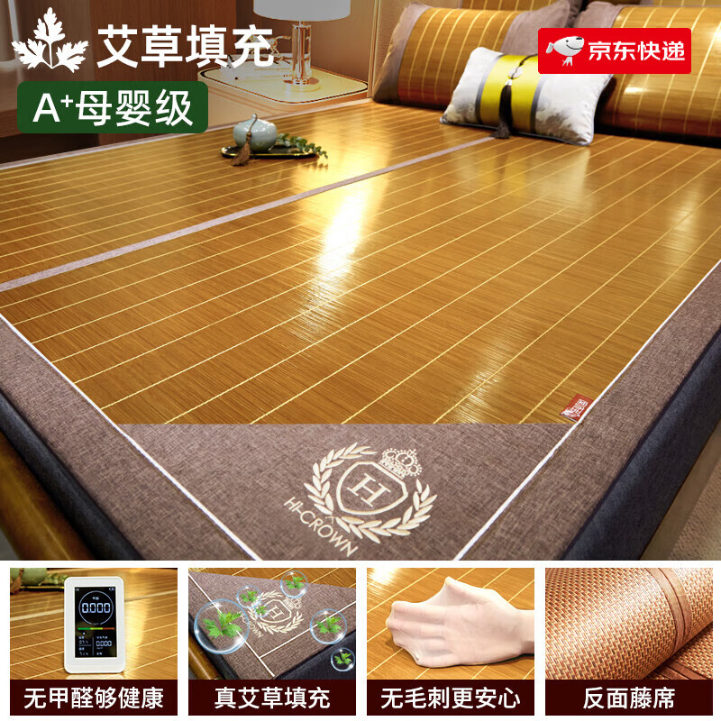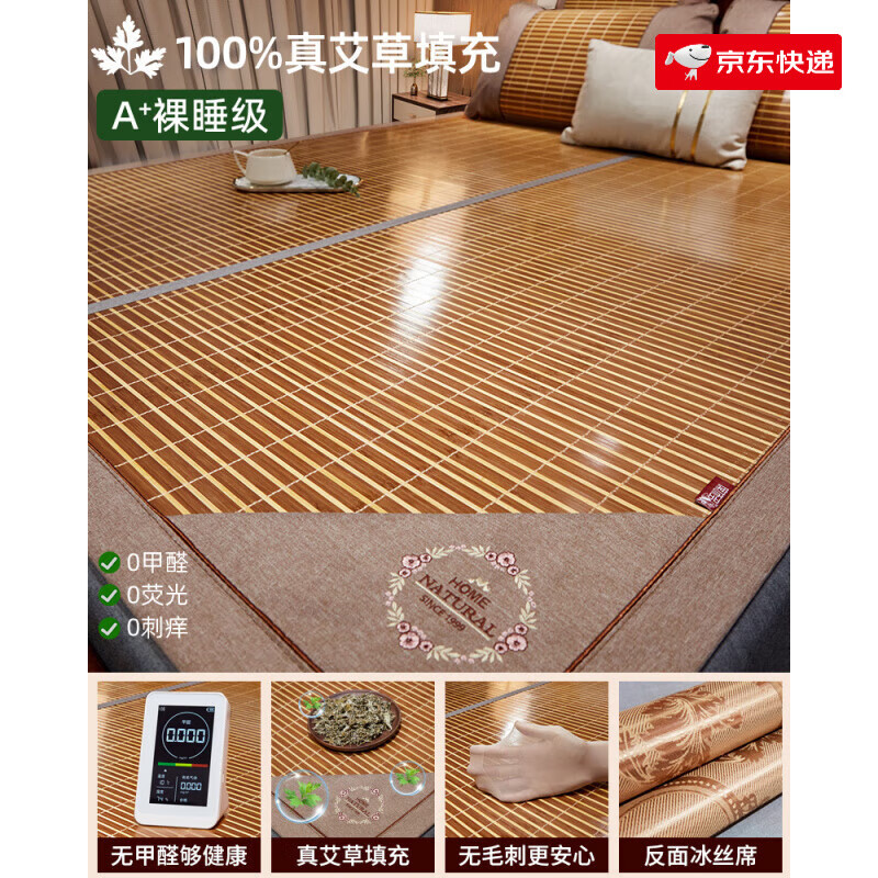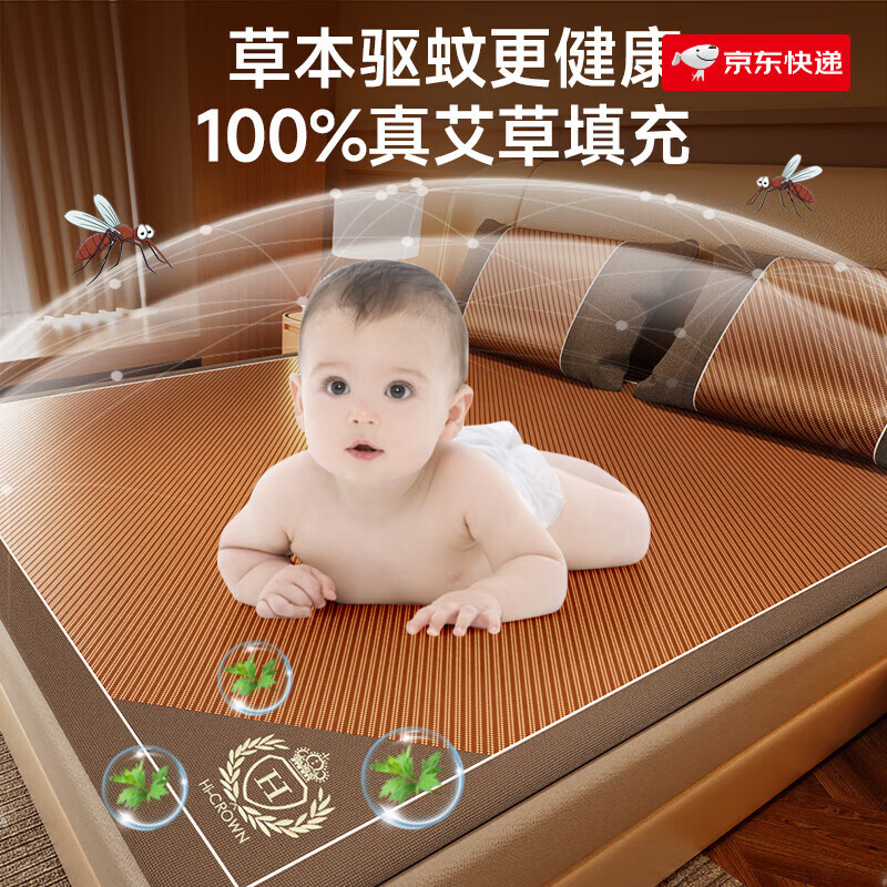 席饰多母婴级艾草凉席藤席夏季天然草席子空调冰丝夏天新款家用婴儿可用 亲肤生态席-无枕套【孕婴可用/无 150cmx200cm