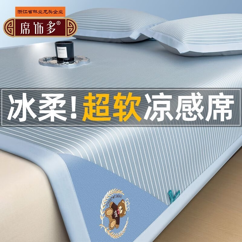席饰多可机洗凉感冰豆豆a类母婴级凉席冰丝席三件套空调软凉席 【可可熊灰】凉豆豆席-可机洗 180cm*200cm 【一席两枕套】