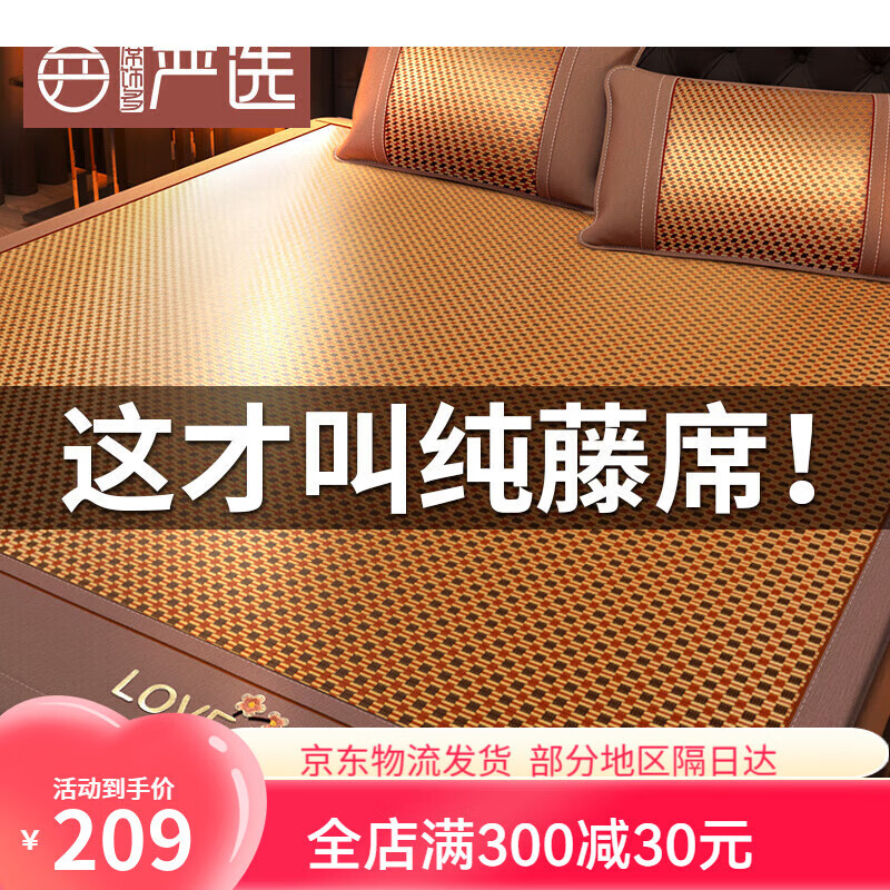 席饰多严选凉席床单宿舍90x190单人夏季天然纯藤席新款冰丝竹席夏天草席家用 亲肤原藤席【带枕套】 150*195cm