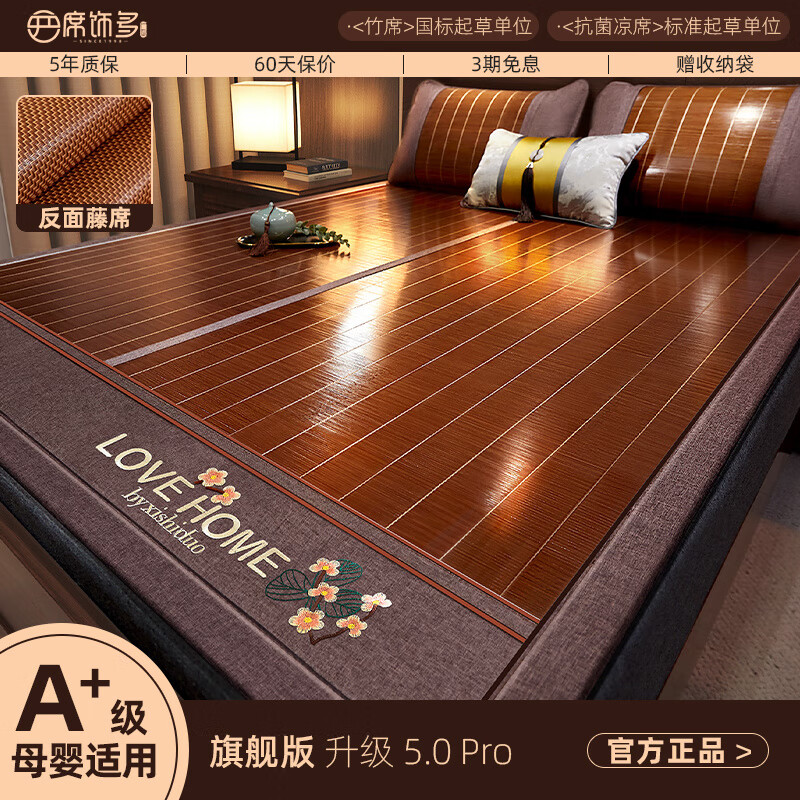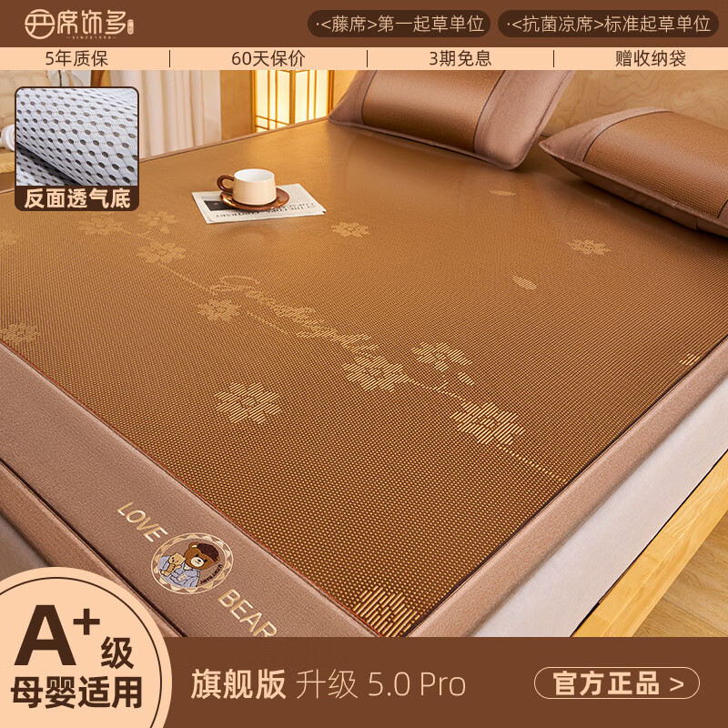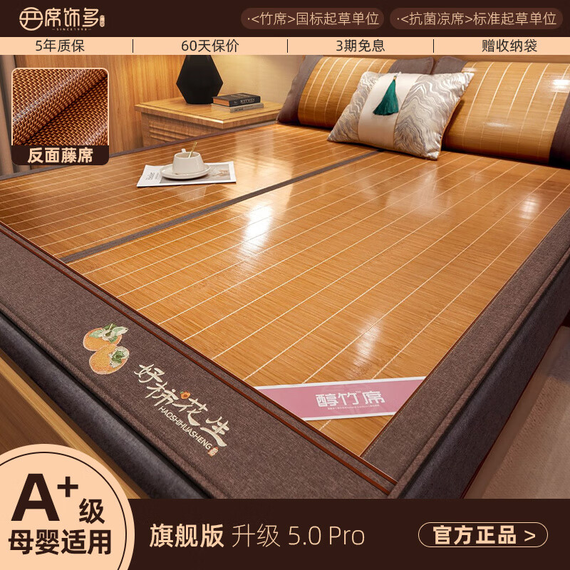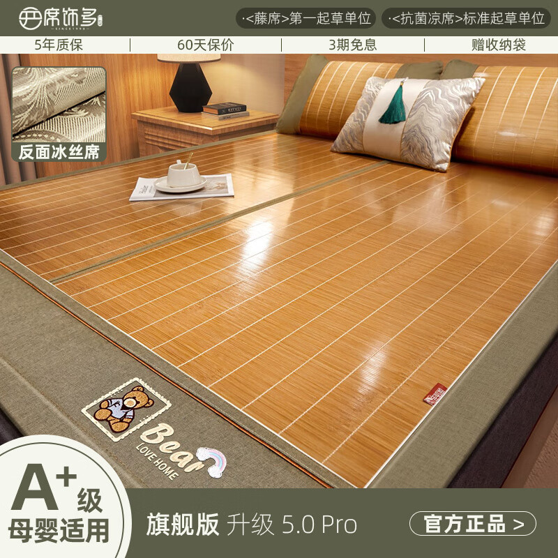 席饰多夏季凉席竹席夏天2025新款藤草席子双面婴儿可用冰丝席a类母婴级 竹藤双面席正反两用(配枕套)150c