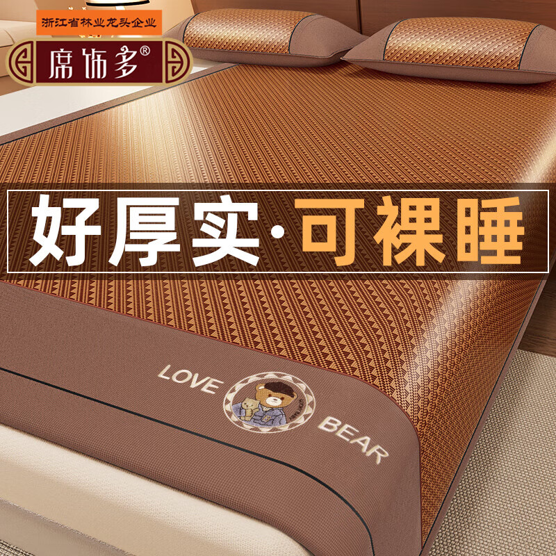 席饰多严选凉席1.8x2米夏季2025新款床上天然藤席草席冬夏两用冰丝凉席家用 熊竹亲肤席【带藤枕套】 180cm*200cm